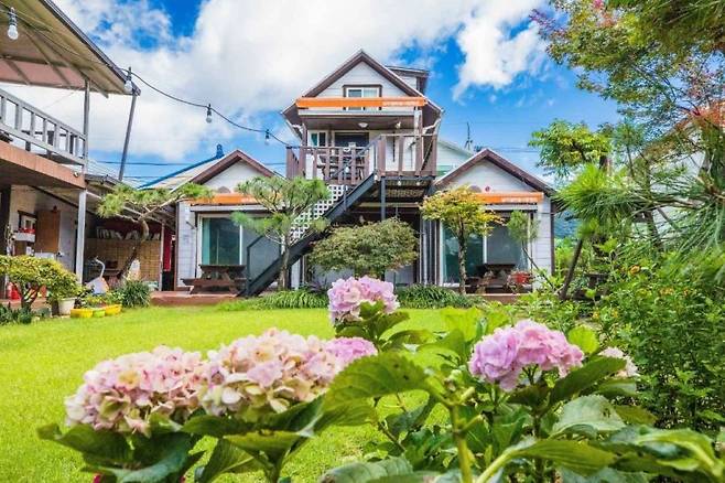 잘 가꿔진 잔디 정원은 어느 각도에서 찍어도 인생 사진을 남길 수 있을 정도로 아름다운데요. 여름에는 수국도 피어나 펜션을 더욱 아름답게 만들어준답니다. 조용한 분위기에서 힐링할 수 있는 가평 펜션을 찾고 있다면 남이섬하늘사랑을 찾아보세요!
