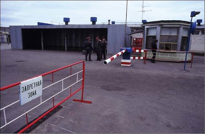 | ▲ 출입을 금지하는 체르노빌존 반경 30KM라고 쓰여있는 출입 통제 현장. 1994년 최예용 촬영. |