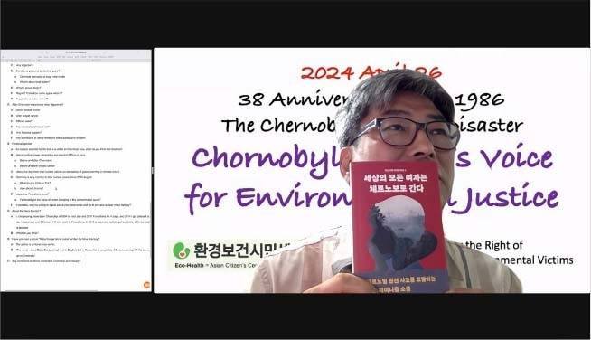 - 저 최예용은 환경운동가로서 핵사고 현장을 조사하기 위해 1994년 체르노빌에서 하루, 2011년 후쿠시마에서 4일 있은 후, 2014년 양쪽 눈 백내장 수술을 받았어요. 저 외에 후쿠시마에 같이 간 6명 중 2015년 일본인 운동가가 백혈병에 걸렸고, 한 한국 활동가가 갑상선 문제를 겪었습니다. 어떻게 생각하나요?