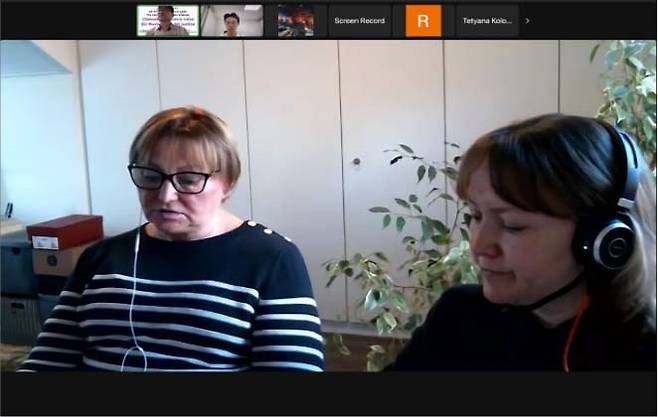 | ▲ 온라인으로 인터뷰에 참가하고 있는 올가(왼쪽)와 통역을 맡은 그녀의 딸 테탸나 |