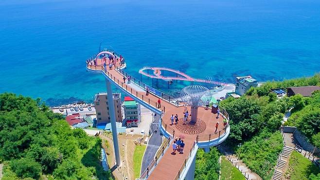 59m 높이의 유리 바닥 스카이워크 ‘하늘산책로’는 발 아래로 펼쳐진 푸른 동해를 조망할 수 있어 발길을 멈추게 하며, 하늘 위를 달리는 자전거 ‘스카이사이클’과 대형 미끄럼틀 ‘자이언트슬라이드’는 짜릿한 경험을 선사한다. 단, 체험시설은 오후 6시까지만 운영되며, 기상에 따라 탄력적으로 운영된다.