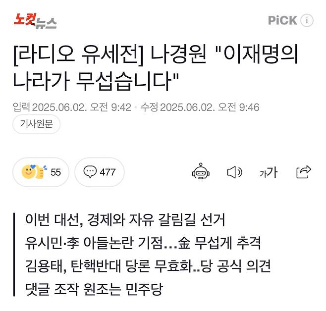 [라디오 유세전] 나경원 "이재명의 나라가 무섭습니다"