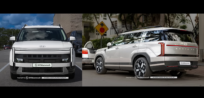 이번 싼타페의 핵심은 바로 전면부 디자인이다. 유튜버 뉴욕맘모스가 공개한 렌더링에서 보이듯, 대형 H자 구조의 주간주행등(DRL)과 통합형 라디에이터 그릴이 SUV 디자인의 새 기준을 제시했다. 전면부 전체가 ‘하나의 얼굴’처럼 통합된 형태는 이전보다 훨씬 대담하며, 강인한 존재감을 드러낸다. 반면 쏘렌토는 상대적으로 보수적인 라인 정리와 안정적인 인상에 머물러, 신선함 측면에서는 싼타페가 확실히 앞선다는 평가가 많다.