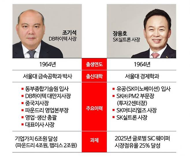 두 기업 리더는 1964년생 동문이다. 조기석 DB하이텍 대표는 서울대 금속공학과, 장용호 SK실트론 대표는 서울대 경제학과를 졸업했다. 둘 사이 학창 시절 접점은 없었던 것으로 전해졌다.