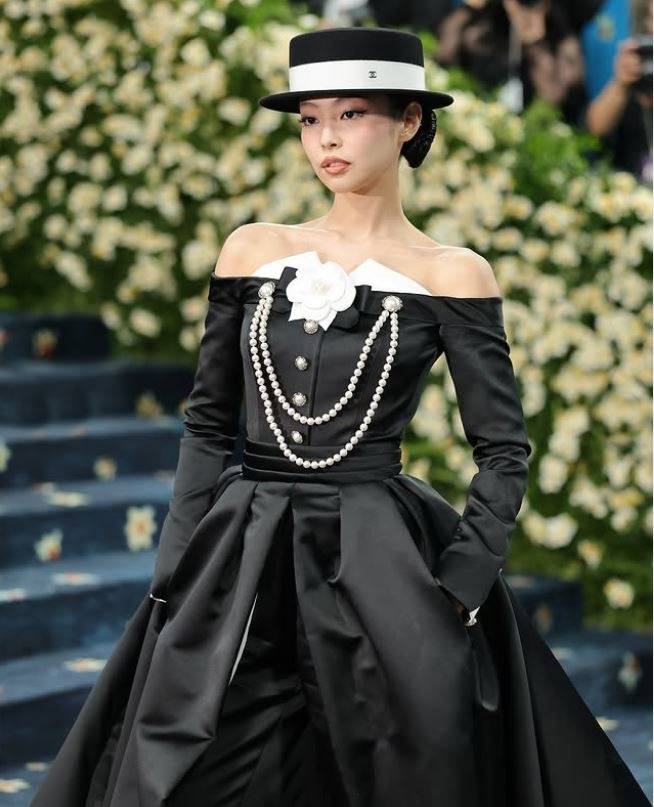 블랙핑크 제니, 리사, 로제 그리고 세븐틴의 에스쿱스 K팝 스타들이 멧갈라에 등장한 가운데 제니는 턱시도를 변형한 클래식한 드레스와 중절모를 쓴 레드카펫 드레스룩으로 등장, 강렬한 존재감을 발산했다.