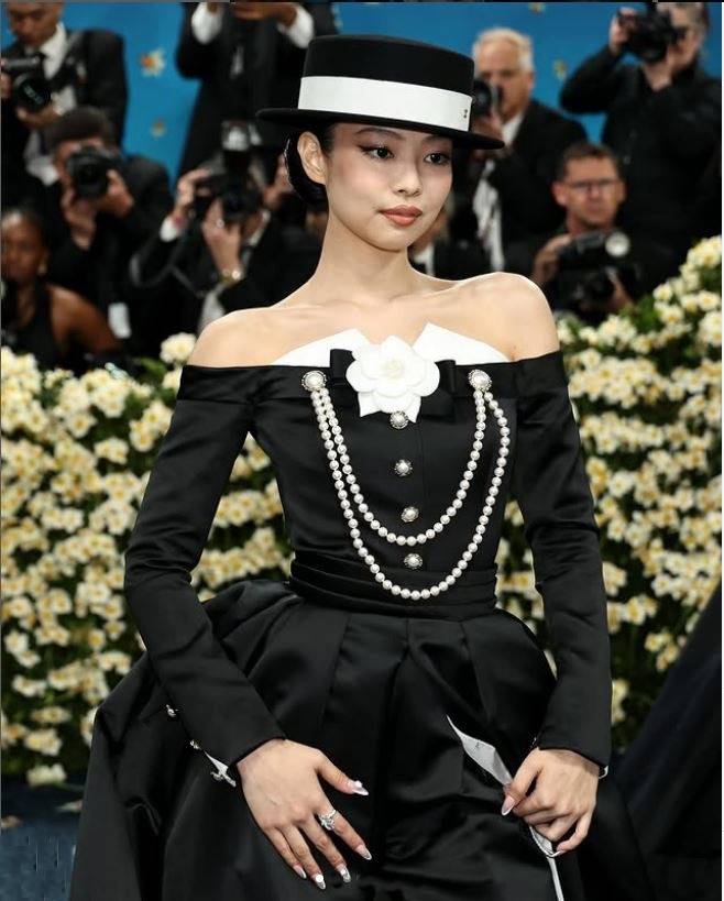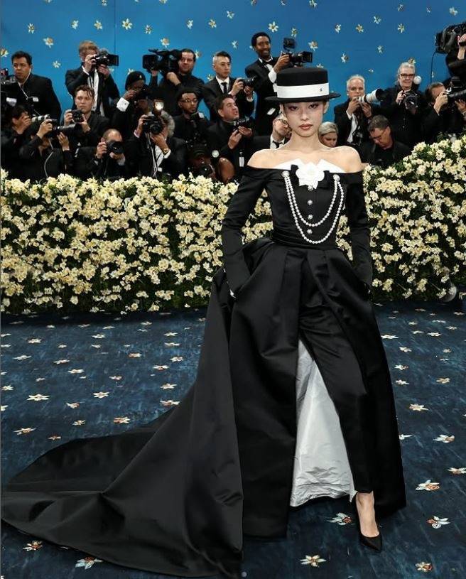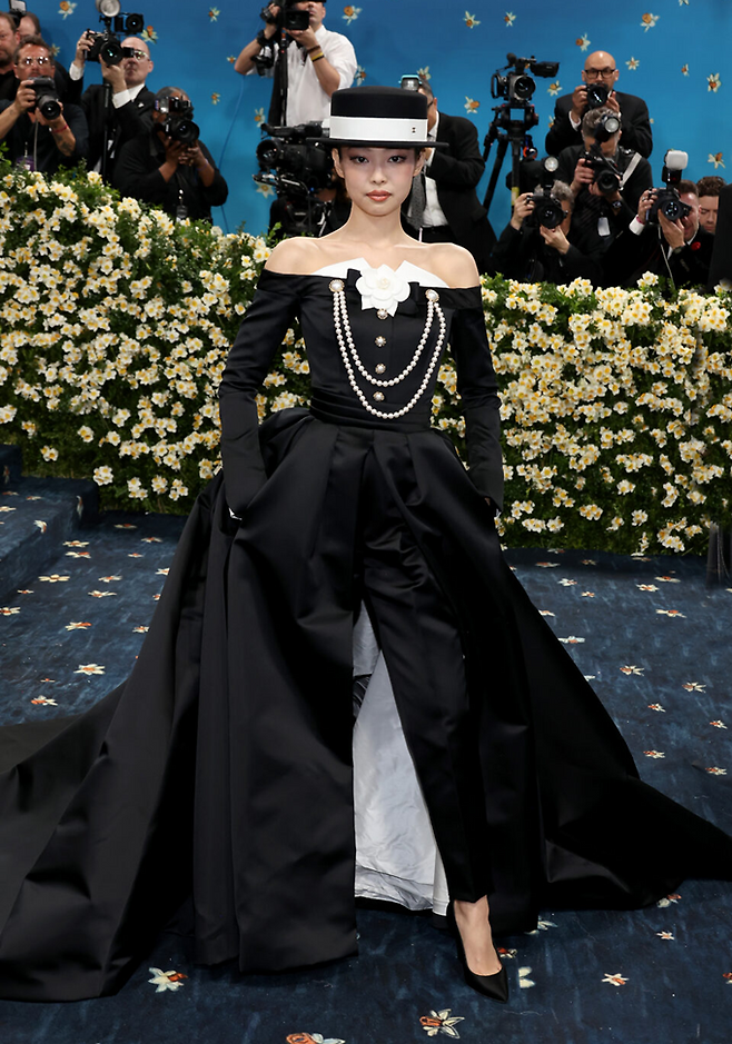 블랙핑크 제니, 리사, 로제 그리고 세븐틴의 에스쿱스 K팝 스타들이 멧갈라에 등장한 가운데 제니는 턱시도를 변형한 클래식한 드레스와 중절모를 쓴 레드카펫 드레스룩으로 등장, 강렬한 존재감을 발산했다.