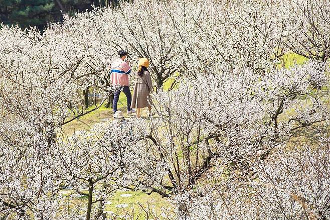 수도권 최초의 매화 테마정원 ‘하늘정원길’은 봄의 시작을 알리는 매화의 향연으로 그야말로 장관을 이룬다. 11개 품종, 700여 그루에 달하는 홍매화와 백매화가 산책로 양옆을 채우고 있으며, 꽃 향기는 산책 내내 은은하게 퍼져 있다.