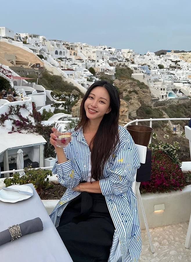 공개한 사진에서 한예슬은 그리스의 이국적인 풍경을 배경으로 밝은 미소와 함께 오버핏 스트라이프 셔츠로 여전히 변치않는 미모를 드러냈다.