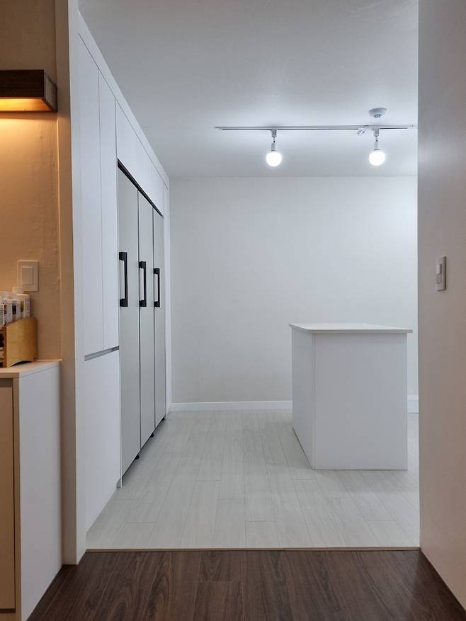 철거하기 전 남편과 사장님 모두 단열과 소음 문제를 걱정했지만 저는 바깥쪽 방화문을 잘 닫아 놓고 생활하면 괜찮을 거라고 생각했습니다. (다행히 올 겨울을 지내는 동안 난방과 소음 문제 없이 무사히 잘 지내고 있어요)