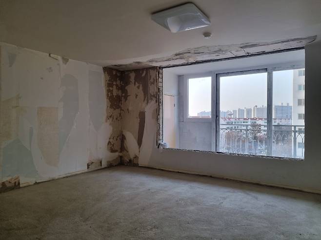 분양 시 3룸, 4룸 두 가지의 타입이 있었는데 저희 집은 3룸이었고 전 주인 분이 거실 공간에 가벽을 쳐서 4룸으로 만들어 놓은 상태라 가벽을 철거하여 거실 공간을 최대한 넓게 쓰기로 결정했습니다.