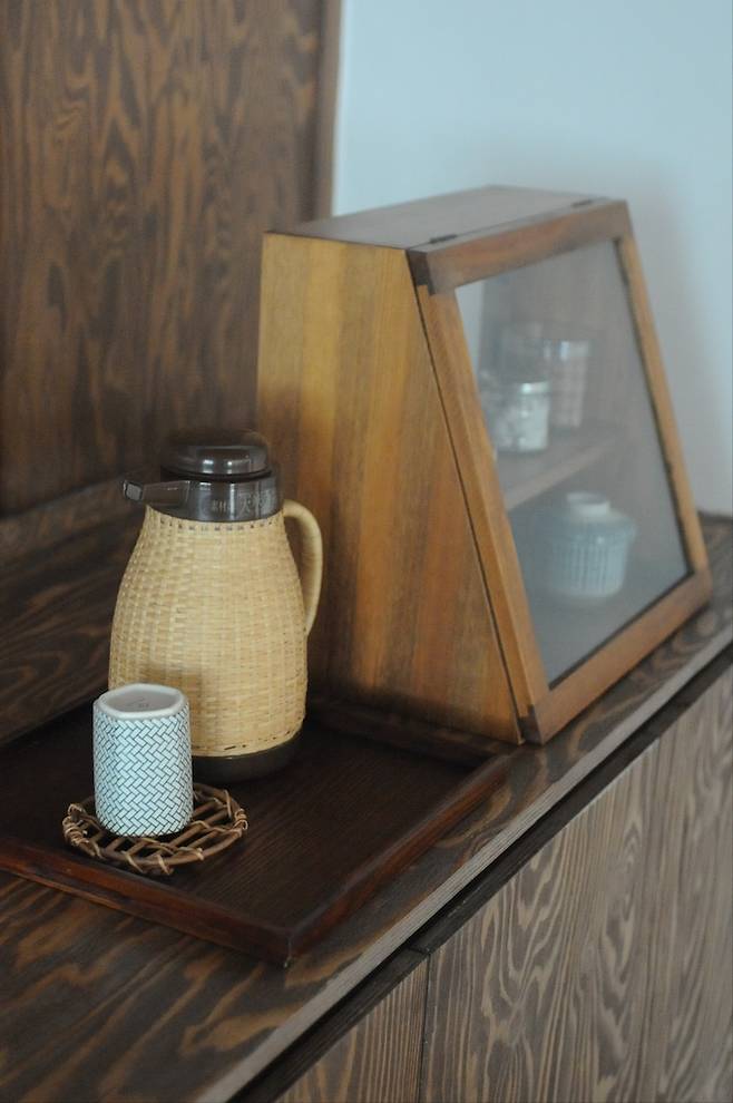 수납장의 폭을 넉넉하게 600으로 만들었더니 수납 효과도 좋고 수납장 상단을 활용하니 아날로그 느낌의 미니 홈카페도 되네요!