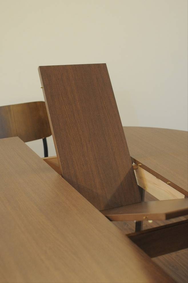 원형 테이블은 확장형으로 상판이 노출 없이 테이블 아래쪽에 숨어 있어서 평소에는 4인용, 확장 시 6인용으로 필요에 따라 잘 사용하고 있습니다.