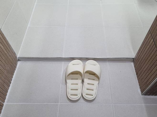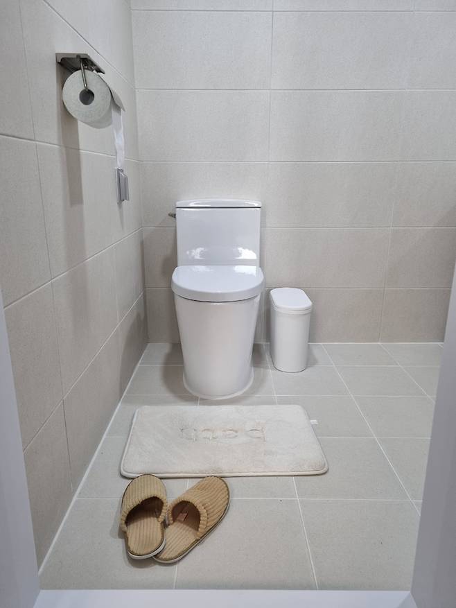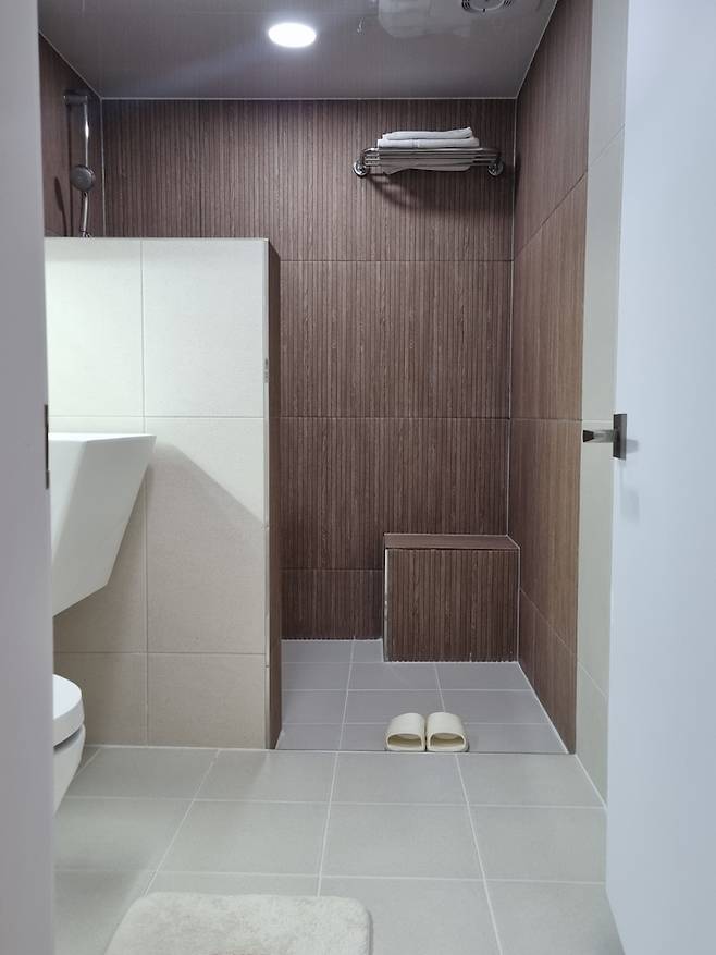 공용화장실은 건식과 샤워 공간에 단차를 살짝 두어 물이 넘어가지 않도록했는데 막상 사용하고 보니 기왕 단차를 줄거면 조금 더 높였어도 좋았을 것 같습니다.