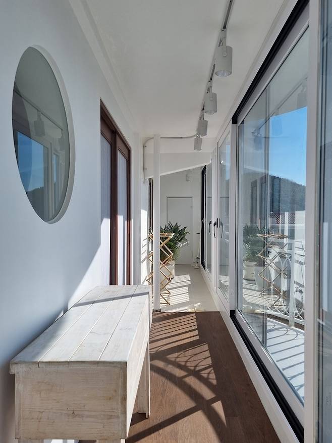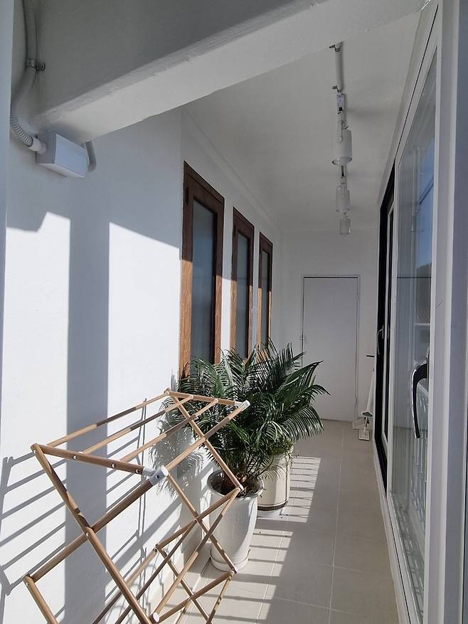 겨울해가 드리워진 '여유가'의 따스한 베란다에요. 가끔 건조기를 사용하지 못하는 빨래를 널어 놓는데 남향집이라 그런지 정말 잘 마른답니다.
