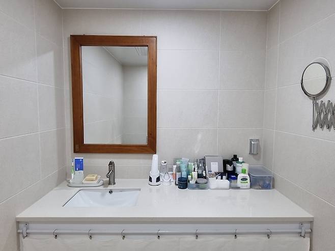 세면대와 파우더룸을 겸하니 세안 후 바로 기초 화장까지 원스톱으로 해결!! 엄청 편하네요.