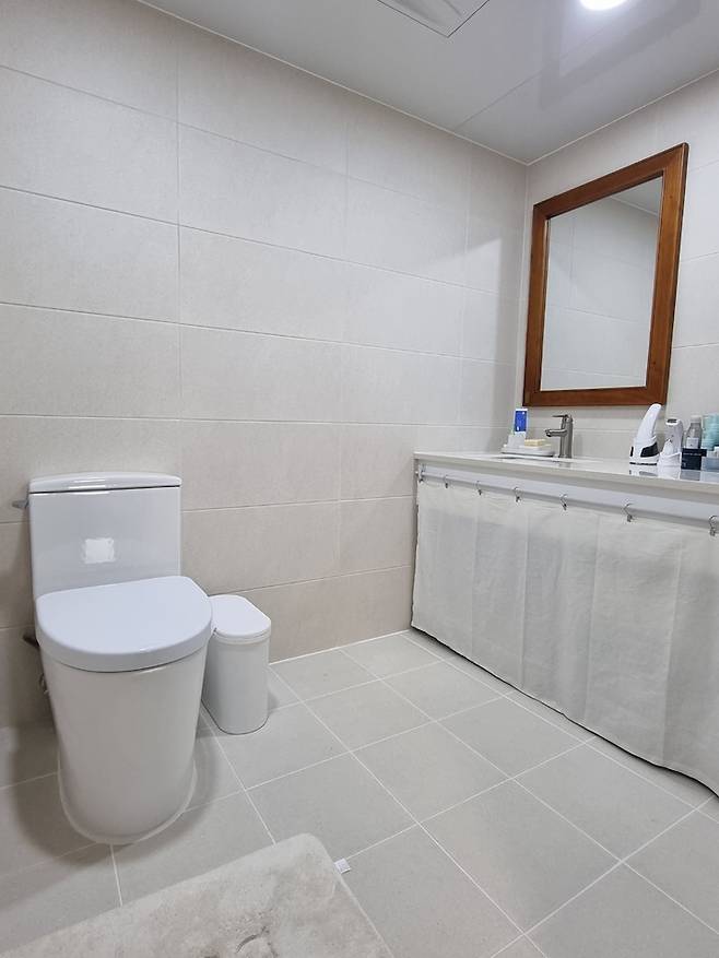 그때는 사실 청소 문제가 좀 있지 않을까....생각했는데 막상 큰아이 집에 가서 생활해보니 곰팡이나 습기로부터 자유롭고 더 깔끔하더라구요. 아마도 저만의 고정 관념이었던게 아닐까 싶어 이번 욕실 리모델링을 하면서 부부 욕실 공간은 온전한 건식으로 만들었습니다.