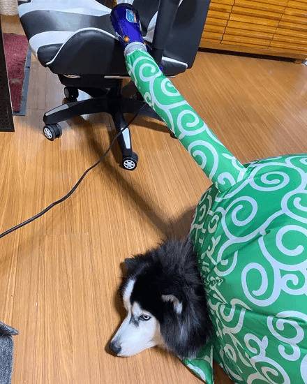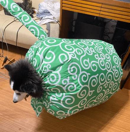 다만, 바람 주머니 안에 갇힌 강아지의 표정은 뭔가 의욕이 사라진 듯 보입니다. 주인은 편리함에 만족하겠지만, 강아지에게는 그다지 즐거운 경험은 아닌 듯합니다.
