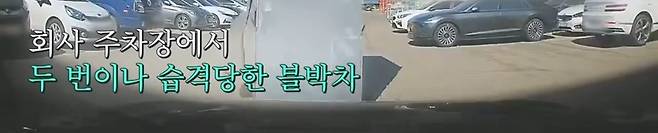 회사 주차장에서 혼자 움직이던 망카트 대형 롤테이너에 2번 습격당한 직원차량