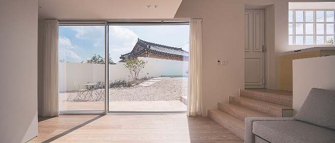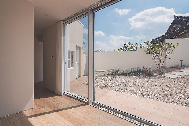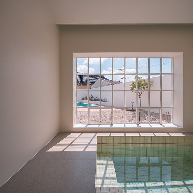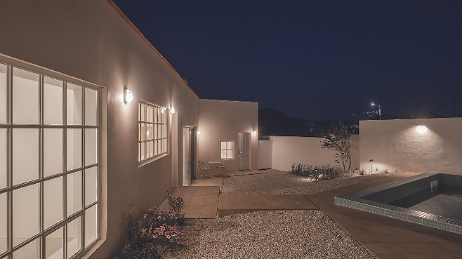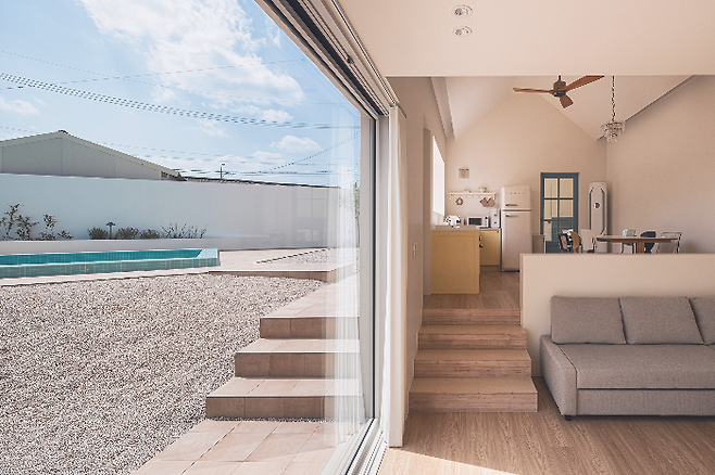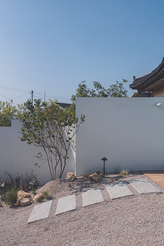 주변 주택단지의 중심에 스테이가 위치해 있어 프라이버시의 확보를 위한 담장 수선 및 외부로 향한 창은 제한했다. 아울러 마당과 실외 수영장이 위치한 외부공간을 통해 충분한 일조와 환기 및 다양한 머무름의 행위가 가능하도록 계획했다.