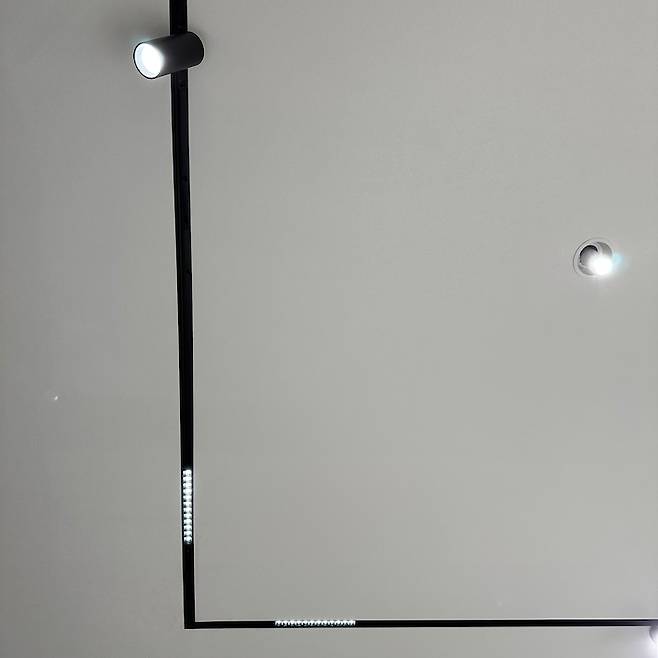 또 다른 포인트 조명은 바로 마그네틱 조명인데요! 거실의 사각 매입등과 마찬가지로 깔끔한 조명을 선호해서 라인을 따라 포인트를 주어보았어요. 아주 마음에 들어요 :)