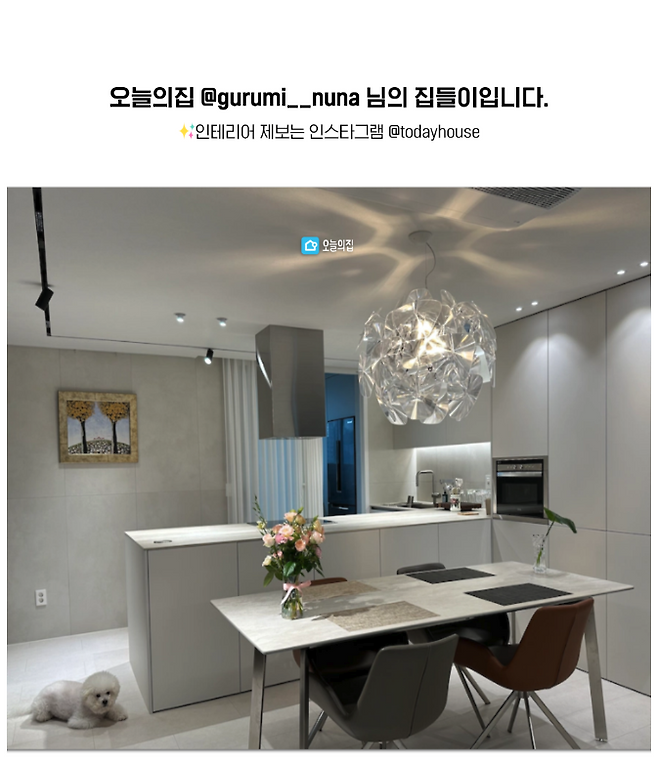 전체적인 모습은 대면형 주방을 원해서 이런 식으로 구성했습니다. 마음에 드는 식탁등 찾기가 어려웠는데 '루체플랜 호프 18' 제품을 발견하고 바로 선택했습니다.