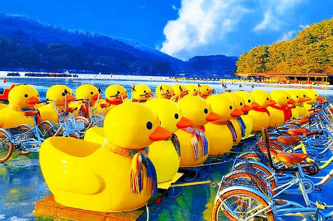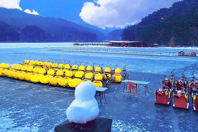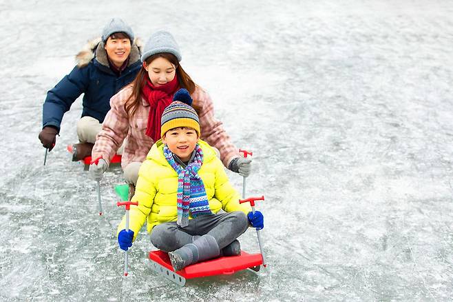 호수 전체가 꽁꽁 얼어붙어 넓고 안전한 썰매장이 만들어지며, 방문객들은 아이스 썰매를 타고 겨울바람을 맞으며 신나게 달릴 수 있습니다.