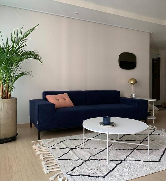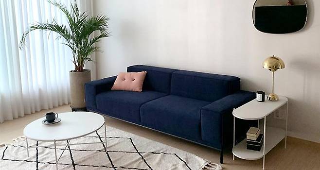 딥한 네이비 컬러가 맘에 드는 소파로 모던한 거실을 꾸며봤어요.