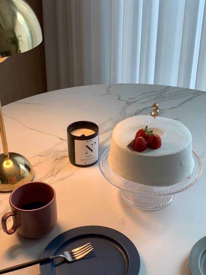 생일 축하도 카페나 레스토랑에 가기보다는 집에서 하게 되는데 나름 큰 창 앞에서 차 마시고 케이크를 먹으니 카페 간 느낌이 나요.