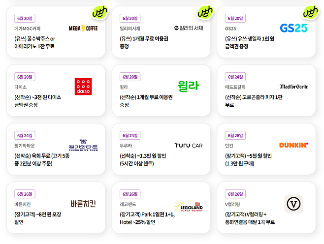 ▪️6월 26일 던킨도너츠, 바른치킨 장기고객 혜택
