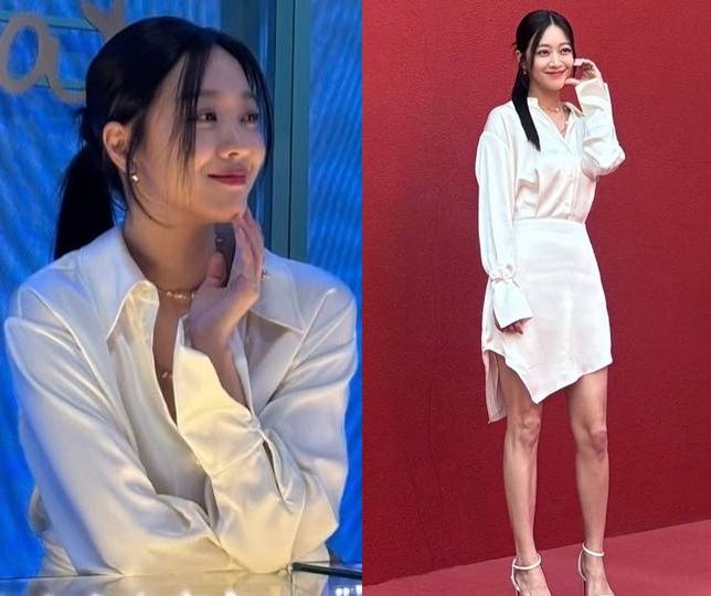 전체적으로 과하지 않은 스타일링으로 우아함과 도회적 매력을 조화롭게 드러냈으며, 화사한 새틴 소재가 조보아의 맑은 피부톤과 어우러져 스타일의 완성도를 높였습니다.