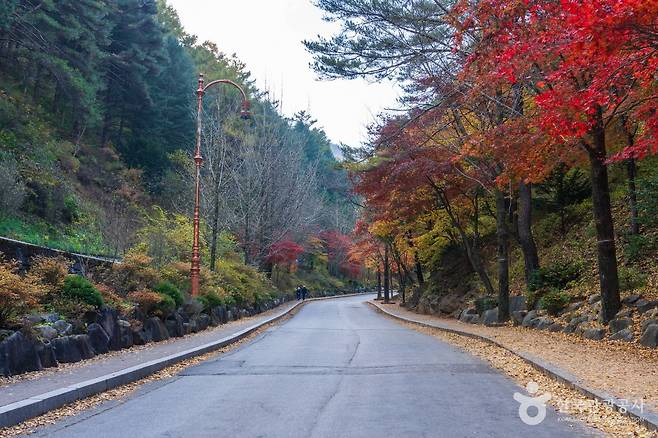 구인사는 사찰이라기보다 마치 ‘단풍 공원’ 같다. 경내 곳곳에 조성된 전나무 오솔길과 단풍길은 누구든 천천히 머물며 걷게끔 만든다.