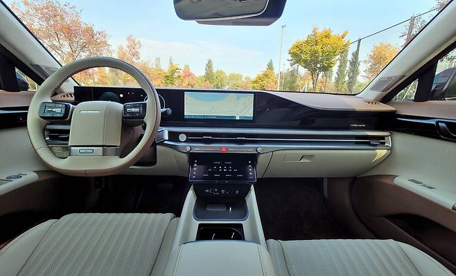 첫인상은 준대형의 큰 덩치와는 결이 다른 부드러움이었다. 실내는 럭셔리는 아니지만 깔끔하고 잔잔한 고급스러움이 느껴졌다. 요란함보다는 편안함을 강조한 방향성이 뚜렷하다. 이는 이 차의 성향과 일치한다. '세게 달리기'보다는 '느긋하게 운전하기'.