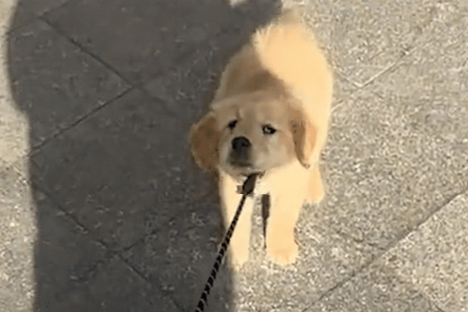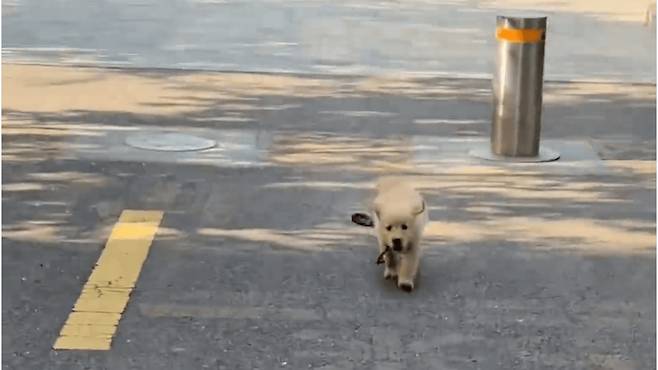 강아지는 처음에 버티다가 주인이 가버리자 당황해서 주인을 쫓아가기 시작했습니다. 주인을 향해 살살 매달리는 듯한 강아지의 표정이 너무 귀엽네요.