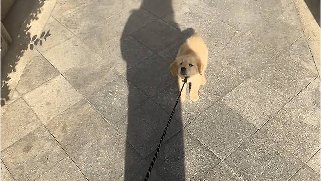 활발하게 산책하다가 집에 가려고 하니 갑자기 꼼짝 않으려는 강아지의 모습이 포착됐습니다.
