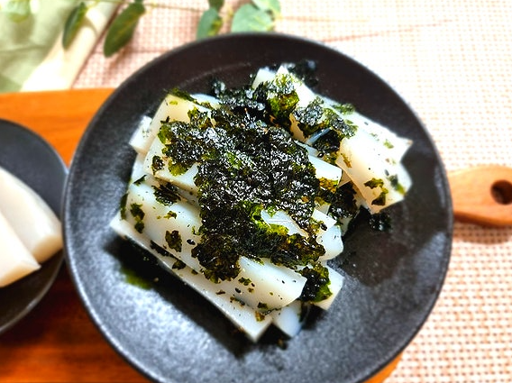 마지막으로 깨소금과 김을 넣어 살짝 무쳐줍니다.