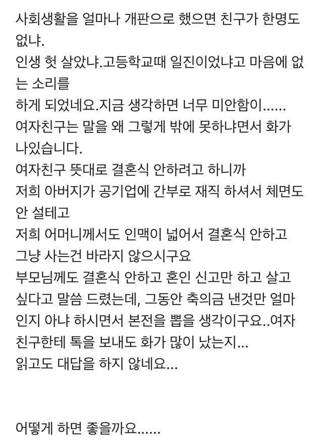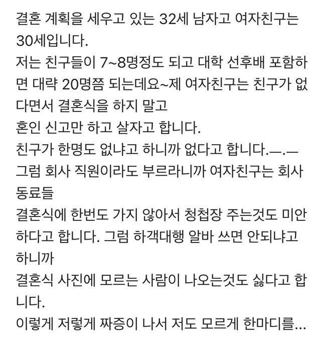 친구 없어서 결혼식 말자는 여자친구