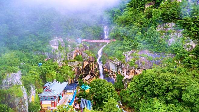 특히 시선을 끄는 것은 경내 뒤편의 출렁다리다. 제3폭포 상단부에 설치된 이 다리는 길이 35미터, 높이 50미터로, 산길을 따라 도보로 올라야 도달할 수 있다.