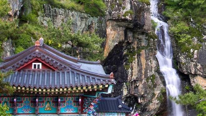 계곡의 공기는 맑고 차가우며 사찰 뒤편 절벽을 타고 흐르는 물줄기는 겨울에도 멈추지 않는다. 흐드러진 물안개 사이로 햇빛이 스며들면 주변은 마치 안갯속 한 폭의 수묵화처럼 펼쳐진다.