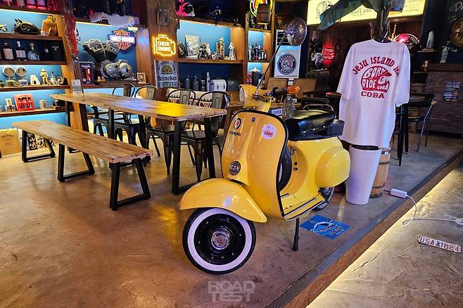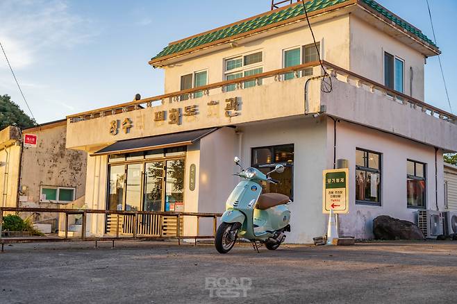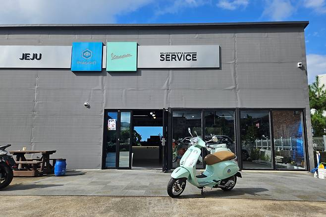 시승차를 받으러 간 곳은 제주시 조천읍에 있는 ‘피아지오 베스파 제주’. 2020년 9월 처음 오픈했으며, 제주도 베스파 오너들의 필수 방문 코스다. 지난 4월 지금의 자리로 확장 이전해 서비스 범위를 더욱 넓혔다. 베스파뿐만 아니라 인디언과 와코, 캔암 등도 취급하며, BMW와 두카티, 트라이엄프 등 다양한 기종을 수리할 수 있다.