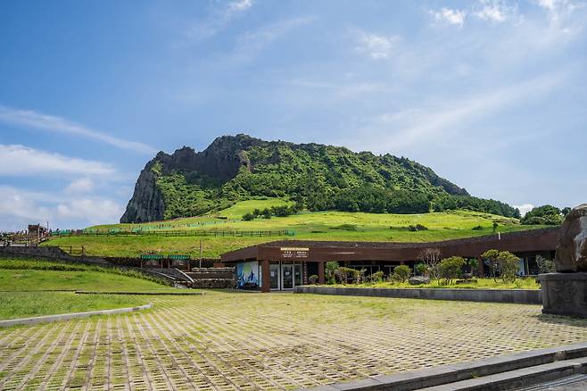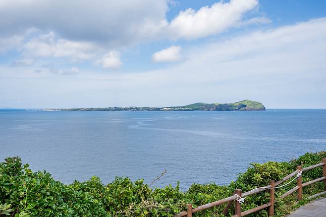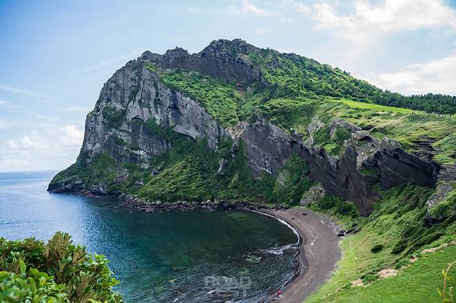 오랜만에 만난 성산일출봉. 이미 고등학교 수학여행을 시작으로 여러 번 방문했지만, 베스파와 다시 찾아오니 감흥이 다르다. 가까워질수록 비현실적인 크기와 진한 색깔에 압도당한다. 계획과 다르게 홀린 듯 주차장까지 입성. 따가운 햇볕에 불평을 늘어놓으면서도 발걸음은 언덕으로 향했다. 산책로 끝에서 나를 기다린 건 수천 년 동안 쌓인 용암의 단면. 그 위에 자란 풀들과 투명한 바다, 멀찍이 보이는 우도까지 순식간에 내 시선을 사로잡았다.