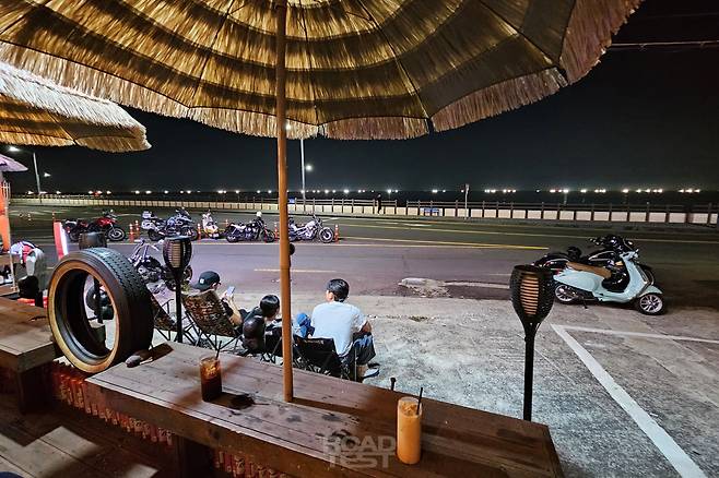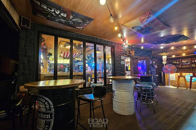 제주공항 뒤편을 달리다가 우연히 발견한 라이더 카페. 힙한 분위기의 실내외, 특히 사장님의 개인 소품으로 꾸민 인테리어가 압권이다. 실내 한가운데에 자리한 올드 베스파도 구경거리. 새벽 1시까지 영업하기 때문에 늦은 시간에도 부담 없이 방문할 수 있다. 제주도에는 라이더 카페가 흔하지 않으니, 모터사이클 투어 중이라면 꼭 한 번씩 들러보자.