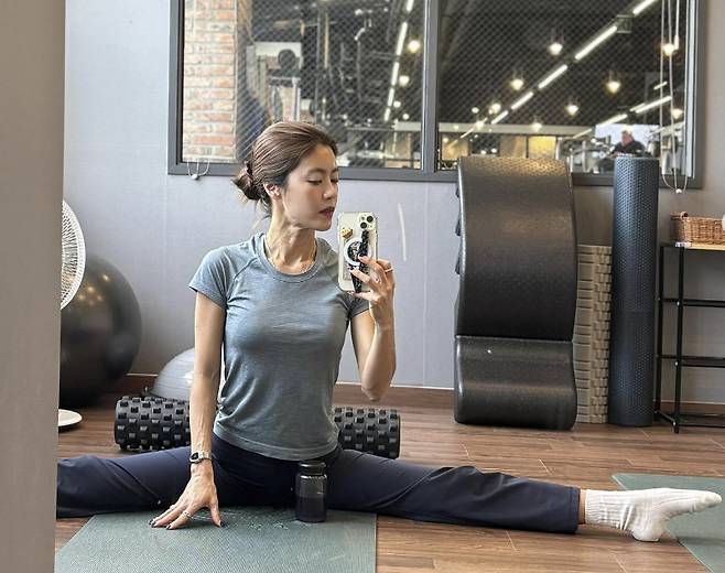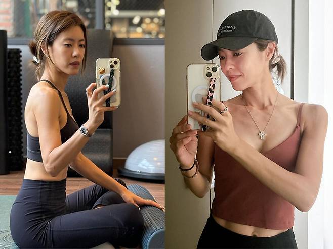출산 후 철저한 관리로 만든 탄탄한 근육과 슬림한 몸매가 감탄을 자아낸다. 공개한 사진 속에는 선명한 복근과 팔근육이 눈에 띈다. 또 유연한 몸 역시 꾸준한 운동의 삶을 엿볼 수 있게 한다.