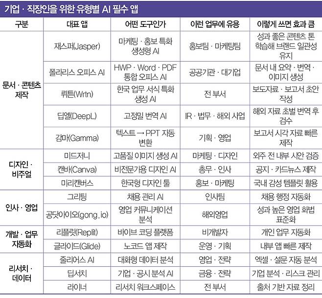 AI 앱이 쏟아지는 한편 정작 생산성을 높여주는 앱을 찾기 어렵다는 직장인 호소 역시 잇따른다. 매경이코노미는 AI 전문가와 현업 개발자 자문을 받아 생산성 높여주는 AI 앱을 엄선해봤다.