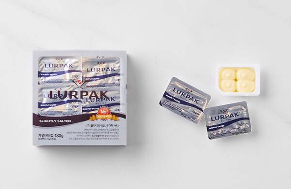 루어팍은 낙농 기술의 선두주자로 꼽히는 덴마크의 프리미엄 발효 버터 브랜드다. 100년 이상의 역사를 지닌 곳으로, 고품질의 크림으로 버터를 만들고 있다. 루어팍의 포션버터는 인공 첨가물을 사용하지 않은 제품으로, 100% 덴마크산 원유의 맛과 향을 그대로 느낄 수 있다. 가염 처리가 돼 있어, 빵이나 스테이크 등에 곁들여서 먹기에 좋다. 10g 용량의 포션버터 18개가 든 패키지를 8,900원의 판매가로 판매하고 있다.