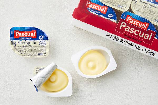 스페인산 버터로는 파스쿠알 제품을 빼놓을 수 없다. 파스쿠알 포션버터는 스페인 카스티야이레온 지방에서 생산된 발효 무염 버터다. 진한 버터맛을 가지고 있으며, 발표 버터 특유의 풍미도 느낄 수 있다. 스위트 크림에서 젖산 버터를 추출하는 NIZO 공법으로 제조됐다. 무염 제품이라 요리에 활용하기 좋다. 10g 용량의 포션버터 12개가 든 패키지로 제공된다. 본 제품의 판매가는 3,700원이다.