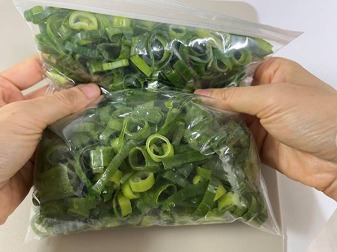 대파 양이 너무 많다면 냉동 보관을 하는 방법도 있습니다. 이때는 대파를 잘게 잘라서 보관하면 편한데요.