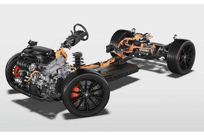 크라운 스포츠 PHEV는 배터리 추가로 인한 강성 확보를 위해 보강제가 추가됐다. 어댑티브 가변 서스펜션은 재조정됐으며, 전륜 6p 브레이크 캘리퍼가 탑재됐다. 배터리 충전 중에도 공조기와 오디오 시스템을 사용할 수 있다. 긴급 상황에서 외부 전원 공급도 가능하다.