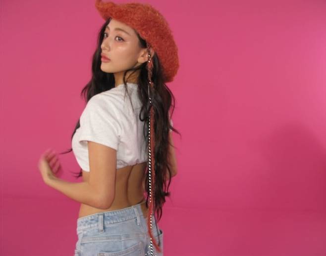 지효는 8 자신의 인스타그램에 여러 장의 사진을 게재하며 화보를 방불케 하는 비주얼을 선보였다. 공개된 사진 속 지효는 강렬한 핑크 배경 앞에서 크롭 티셔츠와 루즈한 데님 팬츠를 매치해 과감하면서도 트렌디한 스타일링을 완성했다.