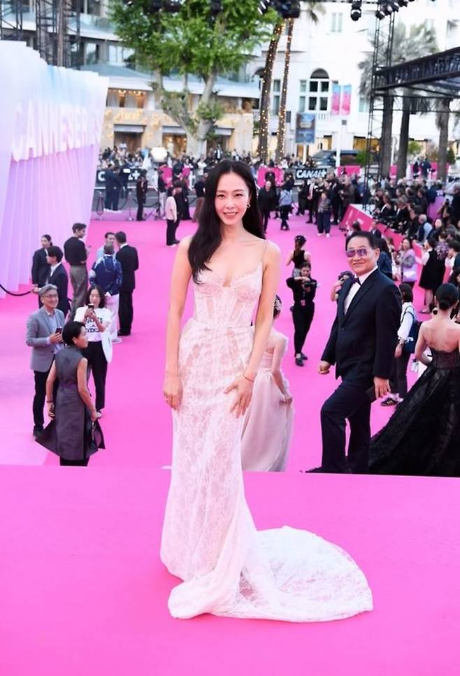 배우 홍수현이 여리여리 시스루빛 오프숄더 롱 드레스룩으로 칸 영화제를 홀렸다.