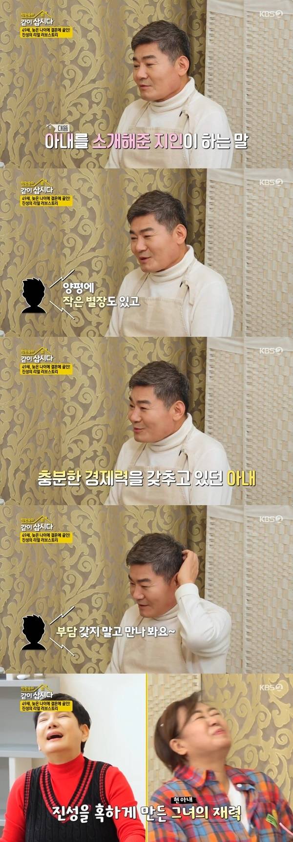 2월 21일 방송된 KBS 2TV ‘박원숙의 같이 삽시다 시즌3’에서는 가수 진성이 아내와 첫 만남을 돌아봤다.